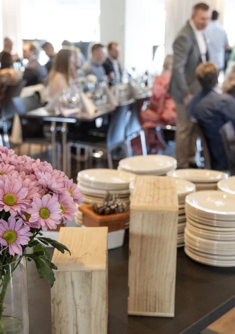 Keskiviikkona messupäivän jälkeen verkostoidutaan illallisen äärellä.→
